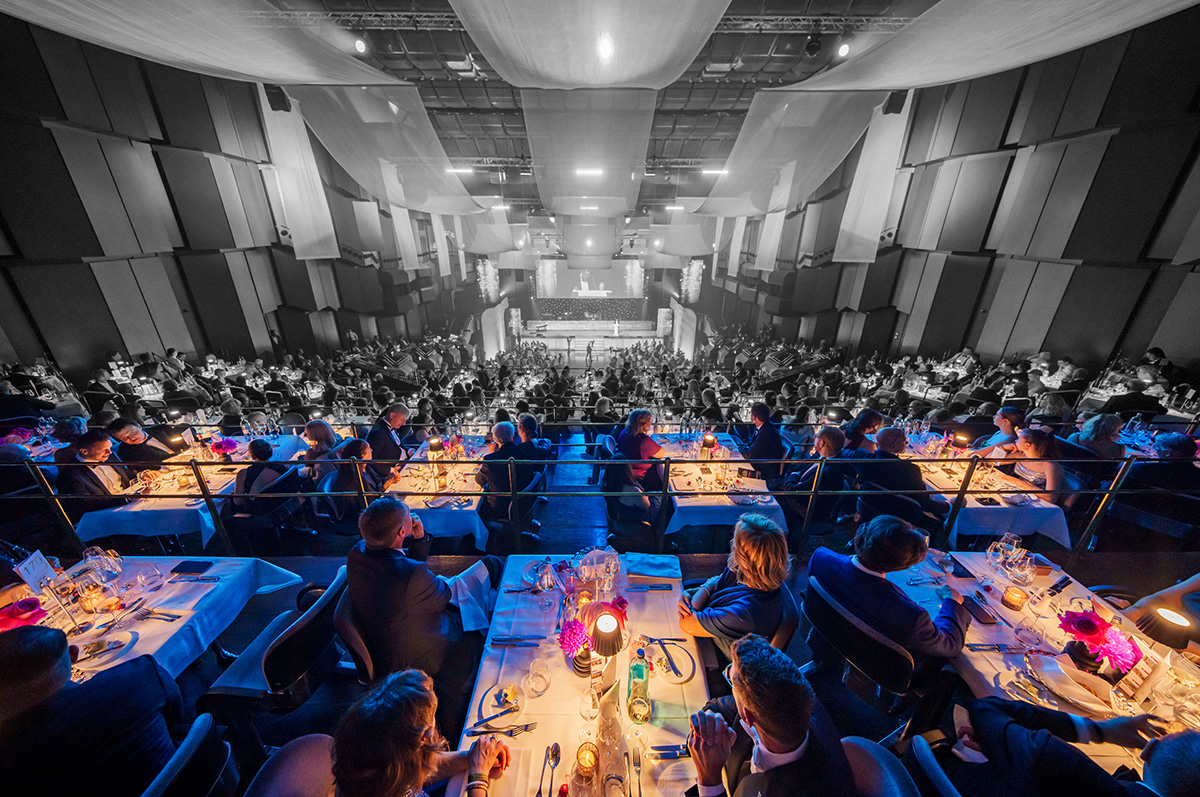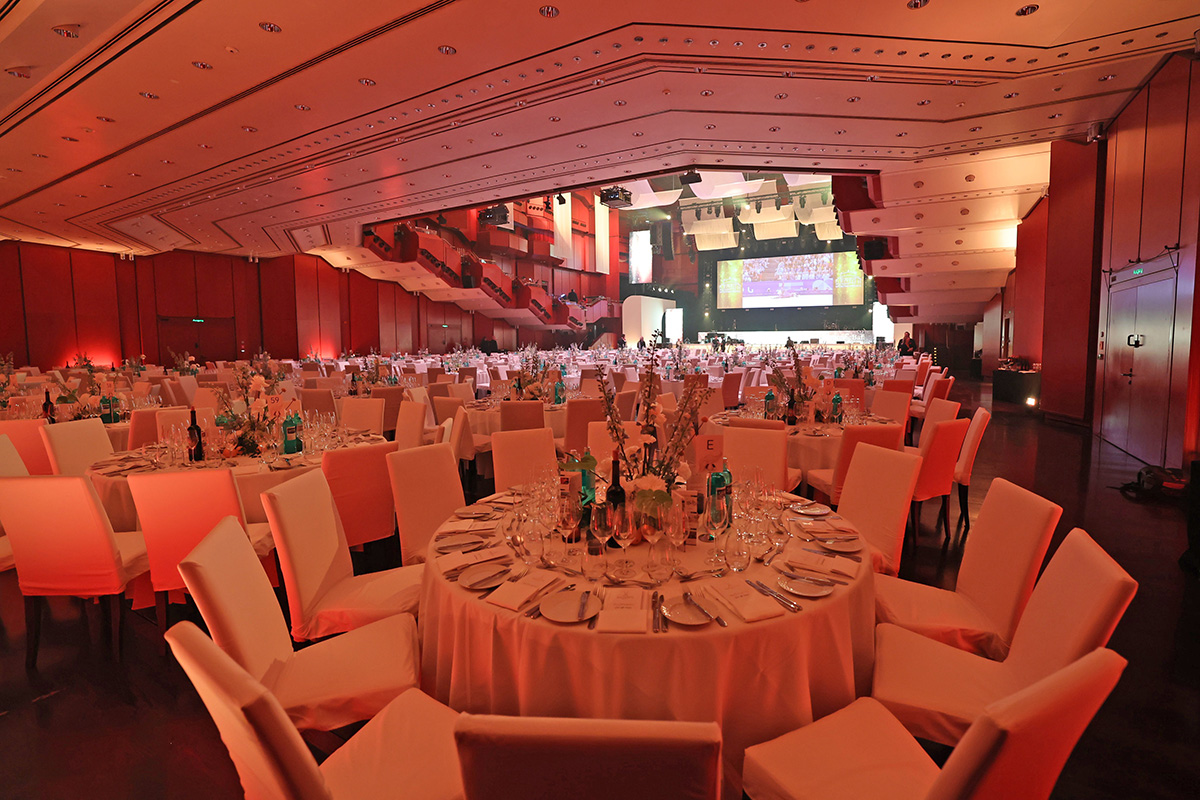 Gäste, die sich für Dinnerkarten in Kategorie B entscheiden, genießen ebenso eine ausgezeichnete Platzierung – nahezu in Saalmitte – mit einer hohen Aufenthaltsqualität. Sie erleben das exklusive Gala-Programm in angenehmer Nähe zur Bühne und einer überzeugenden Sicht auf das Bühnengeschehen. Kategorie B richtet sich an Gäste, die Wert auf Qualität, Komfort und eine repräsentative Umgebung legen und für die umfangreiche Netzwerk-Möglichkeiten wichtig sind, zugleich jedoch eine Alternative zur Premiumplatzierung bevorzugen.